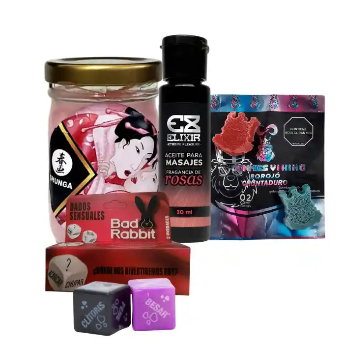 Llenate de amor con la Vela de Masaje! Una deliciosa vela cuyo aceite iluminará los masajes más sensuales y relajantes en pareja, con afrodisíacos efectos sobre la piel. 20 minutos después de encender la vela, su cera se convertirá en un aceite para masajes perfecto (y, créenos, no quema). Enciende la llama de la pasión y déjate inspirar por su encanto y naturalidad. Principales características de la vela de masaje erótica • Vela aromática de masaje. • Hasta 40 horas de uso. • Se convierte en aceite de masaje al arder. • De ingredientes naturales y nutritivos para la piel. (cera de abejas) • Ideal para ambientes románticos y en pareja. • Para múltiples usos y ocasiones románticas. Crea la atmósfera más novelesca y relajante con la Vela de Masaje e invita a tu pareja a los masajes más seductores del momento. Una vela única y original cuya llama al arder se convierte en un nutritivo aceite de masaje para los más estimulantes movimientos y caricias de complicidad. Modo de uso: Enciende la mecha de la Vela de Masaje ambientando así el dormitorio o lugar elegido, espera entre 10 y 20 minutos para que su cera se convierta en aceite y, una vez esté todo listo, vierte su loción entre tus manos y comienza el masaje corporal sobre la piel de tu amante disfrutando de su aterciopelada textura y delicioso aroma. Verás que, aunque pudiese parecer lo contrario, el aceite no quema sino que sencillamente estará a la temperatura perfecta dejando un agradable y encantador aroma sobre vuestros cuerpos. Velas Aromáticas Eróticas de maracuya- cereza – sunny y happy - Coffee delight - baileys se envia olor (DISPONIBLE EN TIENDA) Sus estimulantes esencias te permitirán crear una atmósfera sexy, cargada de deseo. La palabra masaje fue atribuida desde hace muy poco tiempo, sin embargo, se considera que dicha práctica ha existido desde la creación de la humanidad y ha estado presente en diferentes contextos. La historia solamente habla de los masajes de tipo terapéutico o relajante, pero existe otra práctica que se relaciona con la estimulación de zonas íntimas del cuerpo. Con el paso del tiempo la práctica del masaje fue evolucionando hasta que en oriente se perfeccionó. Se dice que el origen de los masajes eróticos nació justamente en esta parte del mundo con la invención de los famosos masajes tántricos o tantras. Modo de uso Aplicar una cantidad suficiente de Aceite Para Masajes Elixir sobre la piel y masajear hasta que se absorba completamente. Reaplicar tantas veces como se desee. Beneficios • Hidratante, humectante, tonificante y emoliente. • Ideal para el juego previo y la lujuria. Dados Eróticos X 3 Unidades Ideal para jugar con tu pareja, estos dados están diseñados para encender el fuego previo a la relación sexual los dados eróticos abrirán nuevas puertas al incluir el juego previo a lo que tanto esperas. • Cantidad: 2 dados • Confidencialidad: Tus pedidos se envían en una caja o sobre totalmente sellado, opaco sin ningún tipo de marcas externas. Para nosotros es muy importante tu privacidad. Potencializador para Hombre y Mujer Disfruta de una explosión de energía y vitalidad con cada bocado, potenciando tu libido y mejorando tu rendimiento sexual de manera natural Disfruta de una gomita antes de tus momentos íntimos para aumentar la energía y la estimulación. Beneficios: -Ositos de goma para el consumo masculino y femenino. -Formulado con una patentada combinación de nutrientes naturales, que estimulan el fluido sangíneo en sus òrganos sexuales brindando una erección más firme y duradera sin ningún efecto secundario. -Ayuda a disfrutar de su sexualidad con la potencia de la juventud tanto en hombres como en mujeres. -Su alto contenido de Chontaduro, Borojó, Chontaduro, brinda beneficios no solo para su vida sexual, sino tambien para su cuerpo en general. Uso:Tomarse 1 Osito de goma 30 minutos antes de cada relación sexual