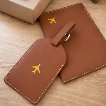 Set viajero personalizado que incluye portapasaporte y etiqueta para equipaje, elaborado en material liviano, resistente y plegable, ideal para mantener tus documentos organizados y facilitar la identificación de tu maleta en cualquier tipo de viaje; práctico, funcional y una excelente opción para uso personal o como regalo.