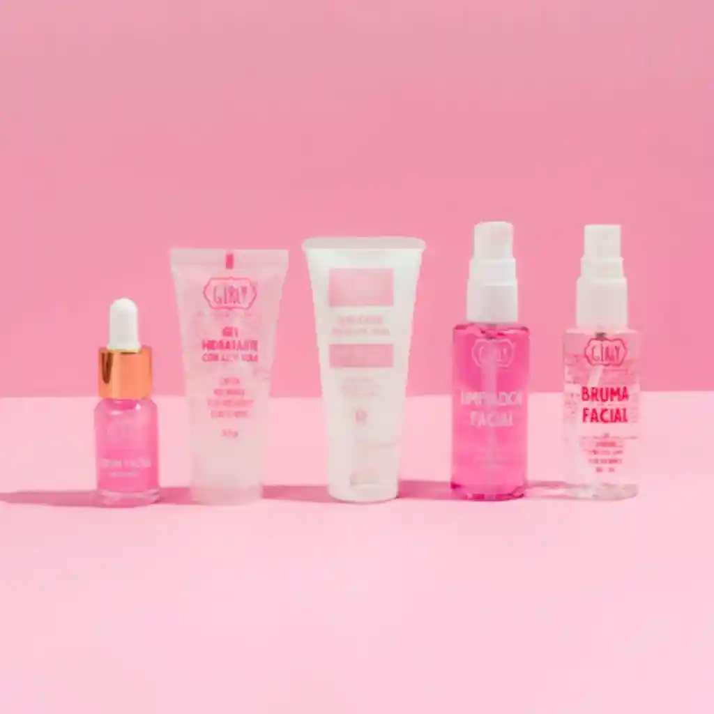 Contiene: -Limpiador facial mini - Bruma facial mini - Suero facial hidratante mini - Gel hidratante mini - Protector solar sin color mini