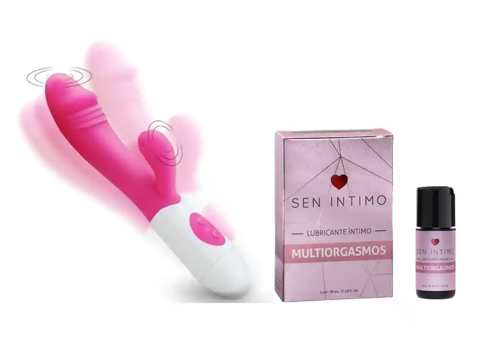 KIT VIBRADOR PUNTO G + LUBRICANTE MULTIORGAMOS Contiene: - Vibrador punto G Recargable - Lubricante Multiorgamos 30ml SEN INTIMO 1. VIBRADOR PUNTO G - 10 VELOCIDADES - A PRUEBA DE AGUA RECARGABLE Descripción Vibrador Punto G es un vibrador para doble estimulación (vaginal y clítoris), ya que cuenta con estimulador de clítoris ubicado perfectamente para una fusión de felicidad interna y externa que te dejara temblando de alegría. Prepárate para las poderosas sensaciones de este lindo vibrador de conejo. Con un potente motor multivelocidad que proporcionará la estimulación por dentro y por fuera para los orgasmos mezclados alucinantes. Características: - Tamaño: 25,5 cms - Diámetro: 4 cms - Material: Silicona TPE - Color: Morado - Carga: Recargable (Incluye cable para cargar) - Funciones: 10 Velodidades - A prueba de agua Cuidado y limpieza: Jabon suave o limpiador de juguetes. 2. LUBRICANTE INTIMO MULTIORGASMOS 30ML CON REGISTRO INVIMA Descripción ¡Activa tu zona de mayor placer! Diseñado para que descubras tus zonas de mayor placer y las estimules. Mejora el flujo sanguíneo en tu zona íntima e incrementa la sensibilidad, llevándote al orgasmo con más facilidad. Modo de uso: Masajea suavemente y en círculos alrededor del clítoris y los labios vaginales para conseguir mayor placer. Puedes aplicarlo sobre el pene y la vagina antes de la penetración. Confidencialidad: Tus pedidos se envían en una caja o sobre totalmente sellado opaco sin ningún tipo de marcas externas. Para nosotros es muy importante tu privacidad.