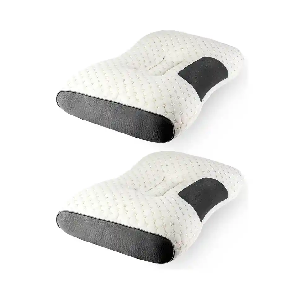 Mejora la calidad del descanso en pareja con este Kit de 2 almohadas ortopédicas cervicales, diseñadas científicamente para proporcionar un soporte óptimo al cuello y la columna vertebral. Cada almohada cuenta con una zona de tracción cervical que previene dolores musculares y mejora la postura al dormir, adaptándose instantáneamente a los movimientos del cuerpo gracias a su relleno de microfibra de alta resiliencia. El tejido exterior con tecnología de malla transpirable asegura un flujo de aire constante para evitar el calor excesivo, y su diseño dividido en zonas permite un soporte especializado para quienes duermen de lado o de espalda, incluyendo fundas de fácil limpieza con cierre integrado. Ficha técnica: Producto: Kit de Almohadas Ortopédicas Modelo: Cervical Deep Sleep Pack Duo Cantidad de almohadas: 2 unidades Largo por unidad: 65 cm Ancho por unidad: 44 cm Altura: Diseño anatómico variable Material exterior: Poliéster tipo panal de alta transpirabilidad Material de relleno: Microfibra sintética suave de alta elasticidad Forma: Contorno cervical para soporte de cabeza y cuello Cuidado: Fundas removibles aptas para lavadora Beneficios: Alivio de presión cervical y mejora de postura Términos de garantía: Para defectos de fábrica o retractos: Por favor revise el producto apenas lo reciba y antes de usarlo. No aplican ley de retracto o defectos de fábrica luego de usar el producto. Se manejan máximo 5 días para reportar defectos de fábrica (por ejemplo, producto funciona mal, piezas faltantes, rotas, etc). Para hacer efectiva la devolución el producto debe devolverse con el empaque original, el cual debe estar en buen estado, incluir todos los documentos y las partes completas y sin daños.