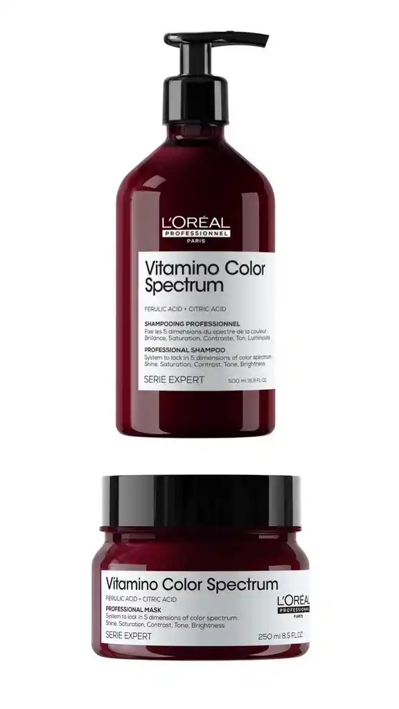 SHAMPOO: 500ML su textura cremosa limpia la fibra dejando el cabello nutrido y más fuerte. Ideal para todo tipo de cabello coloreado. Cabello más nutrido y más fuerte. MASCARILLA: 250ML Mascarilla de nutrición intensa para el cabello coloreado, aporta suavidad y prolonga el color. Con una fórmula enriquecida con ácido ferúlico y ácido cítrico, esta mascarilla ayuda a proteger y fijar el color proporcionando un brillo intenso y una textura suave y sedosa.