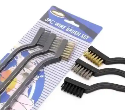 DESCRIPCION El juego de 3 mini cepillos de alambre incluye: - 1 cepillo de alambre de acero inoxidable. - 1 cepillo de alambre de latón. - 1 cepillo de alambre de nailon. Longitud total: 7.0 in. Longitud del mango: Longitud de las cerdas individuales: 1/2 "Tres filas de cerdas: - Longitud: 1-1/4" - Ancho: Mango de plástico de 1/4 pulgadas con mango contorneado utilizado para limpiar, pulir, quitar el óxido, quitar la pintura, etc. Ideal para el hogar, hardware de automoción, hobby, manualidades, etc. CARACTERISTICAS 1 cepillo de alambre de acero inoxidable. 1 cepillo de alambre de latón. 1 cepillo de alambre de nailon. Se utiliza para limpiar, pulir, quitar pintura y óxido, y más. Ideal para automoción, manualidades, hardware, pasatiempos, hogar, y más. Medidas: Largo: 17,5cm Ancho: 1cm Peso: 17.9g
