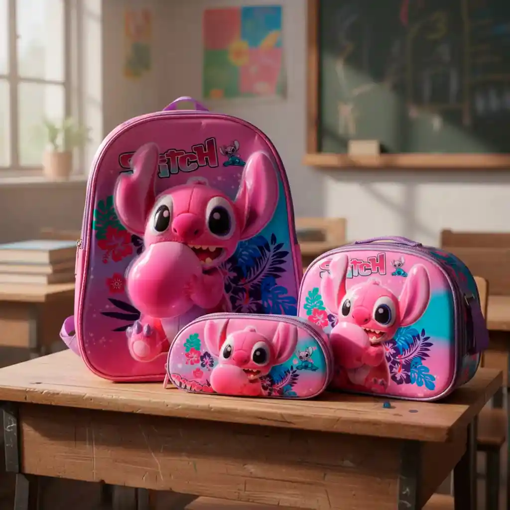 Kit Escolar 3 en 1 con Personajes para Niñas Incluye: Morral mediano + Lonchera + Cartuchera Haz que el regreso a clases sea más emocionante y organizado con este kit completo diseñado especialmente para niñas. Con personajes encantadores y materiales resistentes, es la combinación ideal de estilo, comodidad y practicidad. Características del Morral: Tamaño carta mediano: perfecto para cuadernos y libros escolares. Material lona poliéster impermeable: duradero y fácil de limpiar. Compartimento principal de gran capacidad: espacio suficiente para útiles y accesorios. Dos bolsillos laterales en malla: ideales para botellas o pequeños objetos. Correas y espaldar acolchado: mayor comodidad al cargar. Medidas: Morral: 37 cm alto x 32 cm ancho. Lonchera: 23 cm ancho x 20 cm alto. Cartuchera: 22 cm ancho x 10 cm alto x 5 cm profundidad. Beneficios: Kit completo: mochila, lonchera y cartuchera en un solo paquete. Diseño con personajes que encantan a las niñas. Resistente, práctico y cómodo para el día a día escolar. Ideal para organizar útiles, almuerzo y accesorios en un solo lugar.