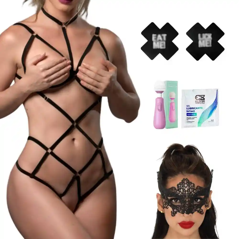 SOMOS CEROTABU ENVIÓ 100% SEGURO Y DISCRETO EMPAQUE 100% DISCRETO: Con el objetivo de mantener la privacidad de tu compra te garantizamos doble empaque sin ningún tipo de logos o características que delaten su contenido. IMPORTANTE: Recuerda que somos fabricantes, distribuidores e importadores directos, todas nuestras imágenes son diseñadas por nosotros directamente, algunos competidores han tomado la costumbre de robar nuestro trabajo, por eso advertimos que cuando se trata de este tipo de artículos así parezca el mismo producto, sus características como material, ingredientes, velocidades, tamaño, etc. puede variar según el fabricante, por ende te sugerimos confiar en nosotros y evitar que te llegue algo que aparentemente es similar pero funcionalmente y estructuralmente es diferente, evita decepciones y compra con confianza. Kit x5 Piezas Ropa Interior Lencería Femenina Arnés Antifaz Kit de Lencería y Placer que lo tiene todo para transformar tus momentos íntimos en una experiencia única y excitante. Este conjunto incluye una lencería ajustable tipo arnés, diseñada para adaptarse perfectamente a tu cuerpo, resaltando tus curvas de manera sensual y garantizando comodidad. Es ideal para avivar la pasión y hacer que cada encuentro sea inolvidable. Añade un toque atrevido con los cubre pezones en forma de X, fabricados con materiales transpirables y amigables con la piel, hipoalergénicos y autoadhesivos, sus colores llamativos y frases atrevidas añaden un toque picante que avivará la chispa en tus encuentros. Para aquellos que buscan un poco más de aventura, este kit incluye un antifaz de poliéster, ideal para juegos de dominación y sadomasoquismo. Con acabados de alta calidad y una cinta ajustable en la parte trasera, se adapta perfectamente a cualquier cabeza, garantizando que te sumerjas en una experiencia de juego emocionante y llena de misterio. El masajeador de clítoris con cuello flexible 360º es otro de los elementos estrella de este kit. Fabricado en silicona médica hipoalergénica, este dispositivo cuenta con dos intensidades de vibración que permiten una estimulación precisa y placentera. Para completar la experiencia, el kit trae un lubricante neutro a base de agua, seguro para su uso con preservativos y juguetes, ideal para combatir la resequedad vaginal y prevenir el dolor causado por la fricción durante las relaciones sexuales. Su fórmula es perfecta para el día a día. CARACTERÍSTICAS: Lencería: LEN011 Talla: Talla única ajustable (talla s, m y l) molde verificado en múltiples modelos garantizando así su total ajustabilidad. Colores: Rojo, Negro, Blanco (Se envía color según disponibilidad) Cubre pezones: Se envia color según disponibilidad Masajeador Clit: Vibración: 2 Modos Tamaño: 15*3.5 CM Antifaz: Tamaño total: 23.5*12.5 CM Lubri. Neutro: 5ml RECOMENDACIONES: • Usar lubricante a base de agua, ya que otro tipo de lubricante puede deteriorar la superficie del producto. • Limpiar con toy cleaner o jabón neutro antes y después de cada uso. • Secar antes de proceder a guardar para conservar su superficie como nueva IMPORTANTE: Usar con baterías 100% nuevas preferiblemente alkalinas (las puedes conseguir en nuestro catalogo, en el d1 o cualquier tienda o farmacia) esto para evitar fallas en su funcionamiento, recuerda que las baterías recargables no sirven con este tipo de productos. RECUERDA QUE, si quieres ahorra en costos de envió, solo debes ir a nuestro catalogo y agregar lo que desees al carrito de compras. ¿QUIERES LLEVAR TUS ENCUENTROS SEXUALES A OTRO NIVEL Y DISFRUTAR AL MÁXIMO EN PAREJA? En nuestra tienda encontraras un amplio portafolio de productos eróticos, como velas para masajes, juguetería anal y vaginal, lubricantes, multiorgasmos, estrechantes, retardantes, y una infinidad de productos más. Recuerda que la monotonía es el principal enemigo de las relaciones por eso atrévete a experimentar nuevas sensaciones de placer.
