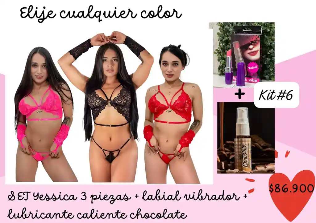 KIT YESSIKA INCLUYE: SET YESSIKA TOP,TANGA, GUANTES LUBRICANTE ORAL CALIENTE 20ML FLAVOR LABIAL VIBRADOR