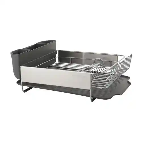 Esta Rejilla Tiene Capacidad Para 11 Platos 7 Tazas o Vasos Ollas Sartenes y Mucho Más Cuenta Con un Compartimento Para Los Cubiertos de 3 Compartimentos Con 2 Inserciones Extraíbles Para Cuchillos Para Separar Los Utensilios. Dispone de Pies Resistentes Suaves y Antideslizantes Que no Rayan Las Encimeras Mientras Mantienen el Estante en su Sitio. Los Duraderos Paneles de Acero Inoxidable y el Diseño de Alambre Satinado Resistente al Óxido Favorecen un Secado al Aire Rápido y Eficaz. Todas Las Piezas Son Desmontables Para Facilitar la Limpieza. Limpia Con un Paño Húmedo.