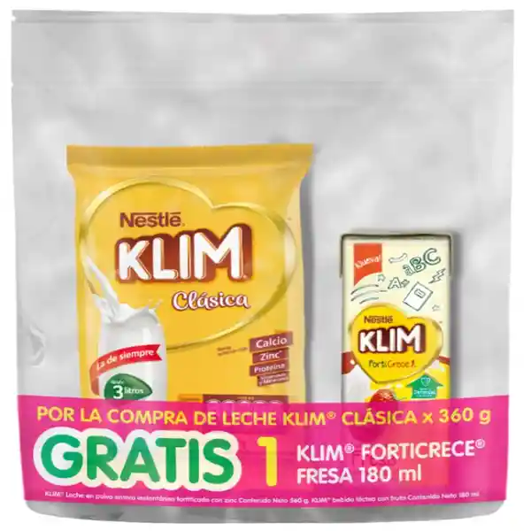 Klim Leche en Polvo 360 g + Klim Bebida Láctea de Fresa 180 mL