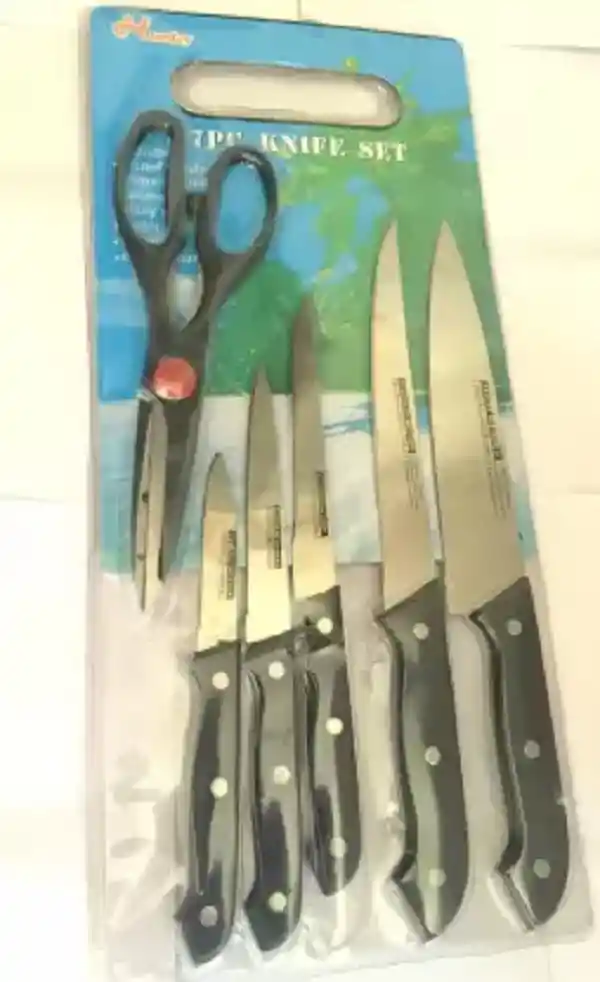 Juego de cuchillos de 7 piezas con tijera y tabla de cortar de alta calidad El mejor juego de cuchillos de cocina de 7 piezas A prueba de herrumbre, hojas de acero inoxidable (microacabado) Los cuchillos son hermosos, funcionales y fáciles de limpiar Cuchillo Forma, equilibrio y peso perfectos La hoja y el mango están unidos permanentemente con Vivets, huecos y costuras Prácticamente indestructibles Los mangos de polipropileno son aptos para lavavajillas Paquetes de cartón Los cuchillos que no se afilan El paquete contiene: 1 cuchillo de chef 1 cuchillo para espeleología 1 cuchillo para deshuesar 1 cuchillo multiusos 1 cuchillo para pelar 1 tabla para cortar 1 tijera El equipo requiere una resolución de problemas imaginativa para evitar terminar con huevos crudos. Equípate con los utensilios de cocina adecuados con la oferta de hoy para un juego de cuchillos de cocina de 5 piezas + tabla de cortar. · El conocimiento del cuchillo no es de ayuda si falta el cuchillo requerido. Obtenga este práctico juego de cuchillos de cocina que incluye un cuchillo de chef, un cuchillo para trinchar, un cuchillo para deshuesar, un cuchillo multiusos, un cuchillo para pelar y tijeras. Se incluye una práctica tabla de cortar para que guarde sus dedos de todas las muescas y cortes que es fácil de adquirir sin uno.