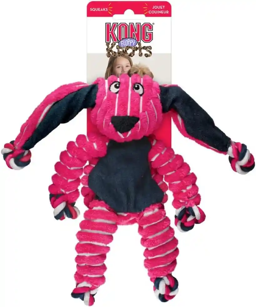 Juguete de tracción de cuerda anudada para perros KONG: El juguete de perro KONG Floppy Knots tiene cuerda anudada interna para satisfacer los instintos naturales de tu perro durante el juego Accesorios duraderos para perros: Suministros duraderos para perros diseñados para resistir el juego brusco y agitado presenta textura variada Suministros para mascotas para perros: El juguete cuenta con silbatos para atraer al juego, lo que lo convierte en una adición ideal a tus suministros para mascotas. Juguete para perros con relleno mínimo: diseñado con un relleno mínimo, este juguete para perros minimiza el desorden, por lo que es un juguete perfecto de bajo mantenimiento.