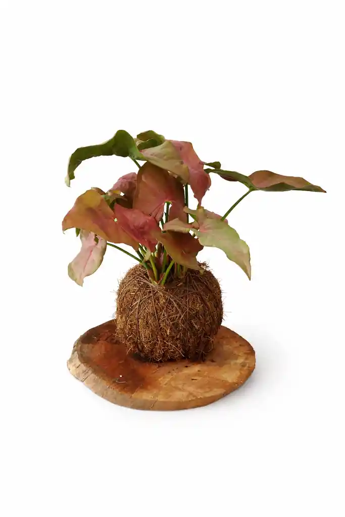 Singonio rosado en kokedama