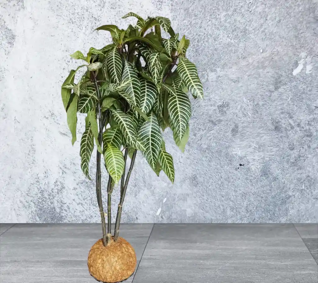 Las Kokedamas son plantas naturales elaboradas de manera artesanal siguiendo una técnica tradicional japonesa, que consiste en albergar la planta en una maceta orgánica de musgo en forma de bola, de ahí su nombre Koke (musgo) Dama (bola). La Kokedama de Afelandra, una planta de interior muy atractiva por sus hojas de color verde oscuro brillante que contrasta con el blanco crema de los nervios. Esta hermosa planta de pequeño tamaño, es una especie que destacará por sí sola por la nervadura de sus hojas.