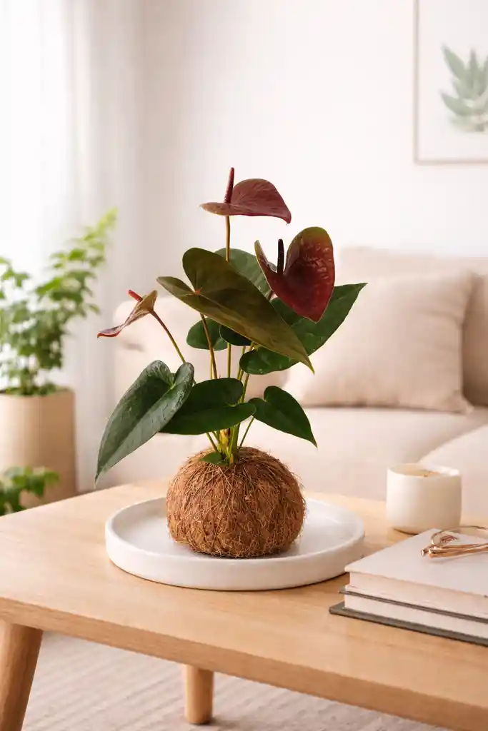 Anturio negro en Kokedama