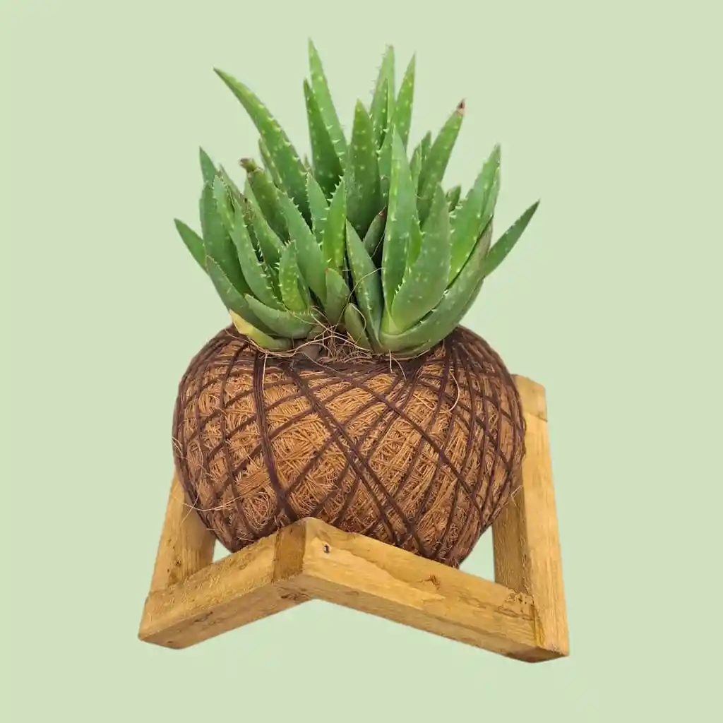 🌱💚 ¡Pequeña pero poderosa! Nuestra mini sábila en kokedama es el toque natural que tu espacio necesita 🧶🌿 Con su base de madera y diseño artesanal, no solo decora, ¡también purifica! ✨ Perfecta para regalar bienestar o dar vida a rincones especiales 🏡🌞 #NaturalmenteBello