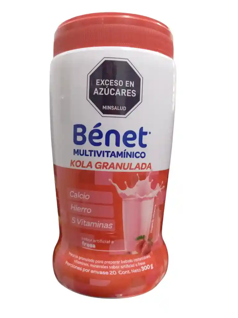 Kola granulada sabor a fresa, incluye calcio, hierro, vitaminas A, B3. Ayuda al metabolismo energetico, a la formacion de hemoglobina, impulsa la energia para las actividades cotidianas. Uso: 2 Cucharaditas en agua o leche.