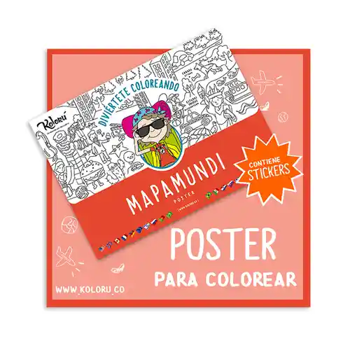 Afiche Gigante Mapamundi, Para Conocer y Colorear en Compañía de Tus Personas Favoritas. Un Espacio Para el Arte lo Puedes Colocar en el Suelo, Pared o en la Mesa. Estimula la Imaginación y la Creatividad. Contiene Stickers . Cuando Finalices lo Puedes Enmarcar. . Póster: papel de 120 g / tamaño 100 x 69cm + Dos páginas de stickers - Empaque: Alto 26cm / Largo 36cm / Ancho 1cm