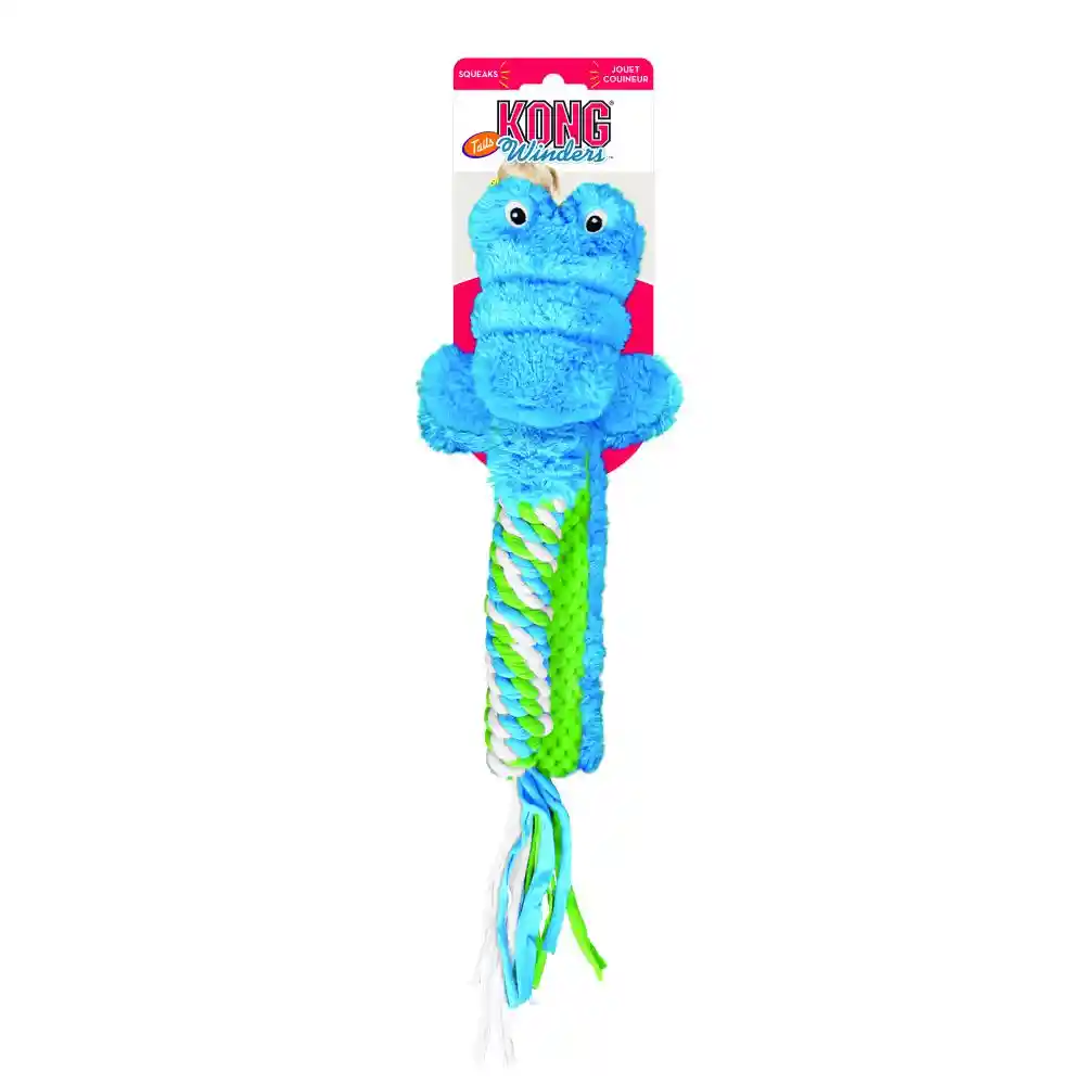 El juguete para perros KONG Winders Tails proporciona más de un metro de diversión y está diseñado para el juego interactivo con su cachorro. A los perros les encanta lanzar, traer y tirar de este emocionante juguete, que viene en cuatro adorables personajes de animales que incluyen cocodrilo. El cuerpo enrollado limpia y pule los dientes de su perro y el chirrido y las colas ayudan a atraer el juego. Beneficios clave Diseñado para el juego interactivo, a los perros les encanta tirar, recoger y tirar de estos emocionantes juguetes. Squeaker en el interior para mayor diversión El cuerpo en espiral pule y limpia los dientes durante el juego. Relleno mínimo para menos desorden en la casa Disponible en cuatro divertidos personajes para que puedas elegir tu favorito Se envía en una variedad de colores aleatorios y divertidos. Cada perro juega de manera diferente y, dado que no todos los juguetes son iguales, siempre es mejor vigilar de cerca a su cachorro en caso de que las cosas se pongan feas. El juego supervisado ayudará a que los juguetes duren más y, lo más importante, mantendrá a tu amigo seguro. Ningún juguete para perros es realmente indestructible, así que siempre retire el juguete del tiempo de juego si las piezas comienzan a romperse.