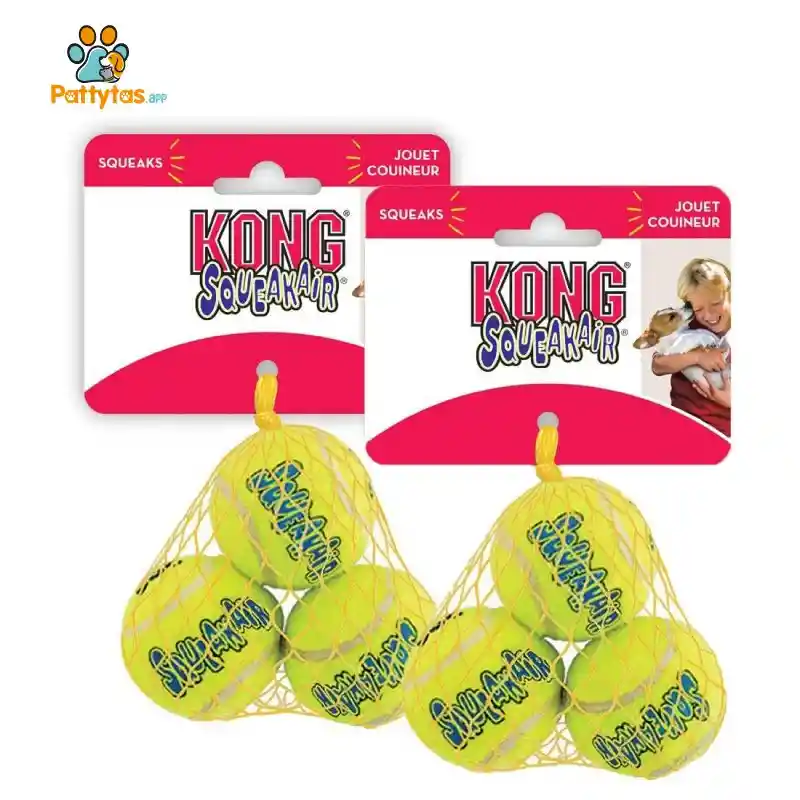 KONG SQUEAK AIR PELOTA TAMAÑO SMALL, combina dos juguetes clásicos para perros la pelota de tenis y el chirriador, para crear el juguete de buscar y recoger perfecto. Nuestra Squeakair Ball, resistente y de alta calidad, no desgastará los dientes del perro. Está hecha con un fieltro no abrasivo especial, no con el material abrasivo de las pelotas de tenis normales 🐾 Dimensiones del tamaño Small 5.1 x 5.1 x 5.1 cm, paquete contiene tres unidades. *IMAGEN DE REFERENCIA: Colores y estampado varían según disponibilidad del momento.