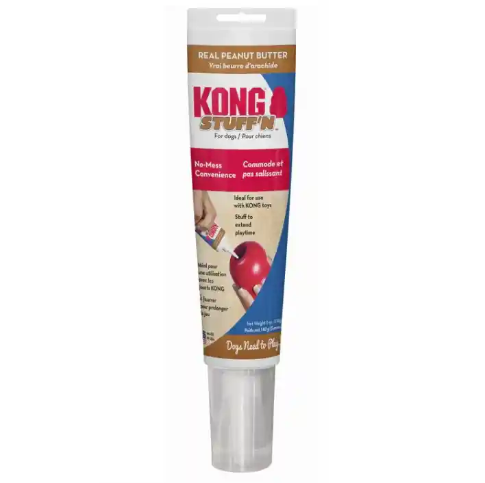 Delicioso snack con sabor a mantequilla de maní ideal para agregar a los juguetes Kong favoritos de tu peludo. Está empacado en un tubo fácil de apretar con boquillas extra largas que facilitan agregarlo al juguete de tu peludo, también puedes recompensarlo directamente desde la boquilla.