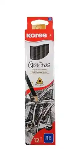 Lápices Grafito 8B x 12 Uds Kores - Lápiz con forma triangular que lo hace ergonómica - Mina de 5.5 mm - Goma blanca de gran calidad ( no deja manchas) - Suave sensación de escritura - En madera de tilo para un afilado perfecto - Mina gruesa suave y resistente - No rasga el papel - Diseño elegante en color negro mate - Disponible graduaciones: 2H,2b,3H,3B,6B y 8B - Marca Kores