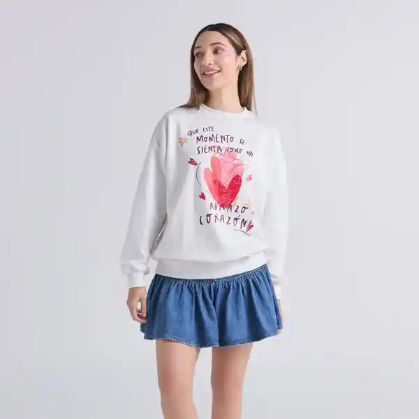 Buzo Abrazo al corazón - Marfil: Buzo color marfil oversize de cuello redondo con cogotera en contraste y manga larga. Cuello, puños y pretina en rib. Cuenta con arte en el delantero, la parte posterior y las mangas. Composición: 100% algodón. Cuidados: Leer la etiqueta de cuidados antes de lavar.