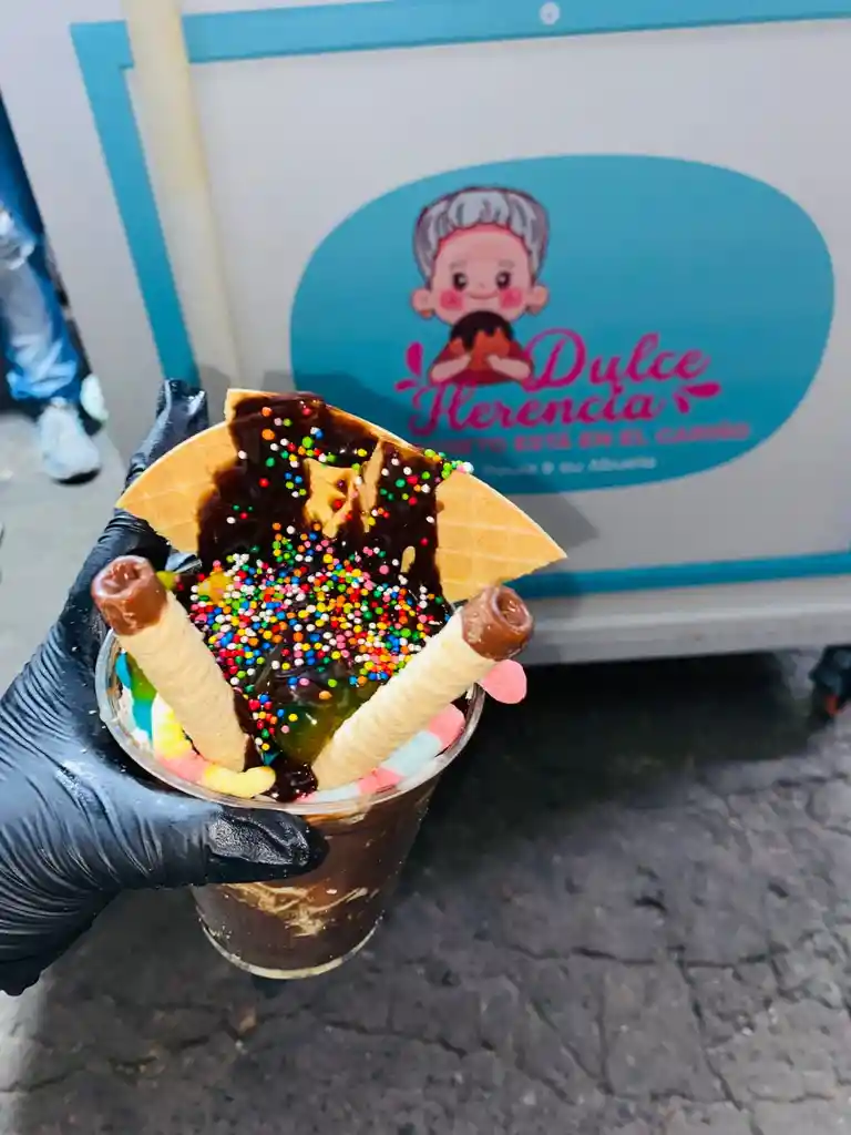 Vaso forrado en Arequipe o Nutella o Mixto + Crema de la casa + Queso + 2 Frutas + 3 Toppings + 2 Salsas