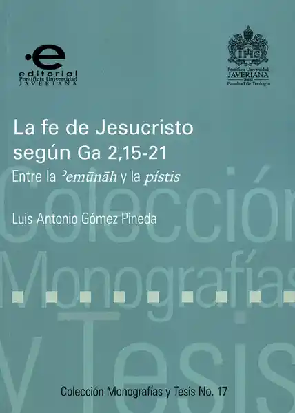 Editorial: Pontificia Universidad Javeriana. Año: 2016. -Es Posible Hablar de la Fe de Jesucristo? Este Texto se Acerca de Manera Exegética y Teológica a la Doble Expresión Que Aparece en el Libro de Gálatas 2,15-21, Que Algunas Versiones Traducen Como “La Fe de Jesucristo” o “La Fe en Jesucristo”. Esta Obra Propone Como Posibilidad de Traducción e Interpretación “La Fe de Jesús”. Para Ello, Realiza un Ejercicio Sincrónico y Diacrónico Del Texto y Aplica Los Aportes de la Nueva Perspectiva Paulina al Análisis de la Expresión “Fe” en San Pablo, Mostrando Que el Apóstol Hace Uso Del Trasfondo Hebreo Para Expresar Dicha Categoría de Forma Novedosa y Que Permite Entender “Fe” en Términos de Fidelidad de Jesús al Padre y Del Padre a Jesús. Religiones y Teología. Filosofia de la Religión. ISBN: 9789587169553