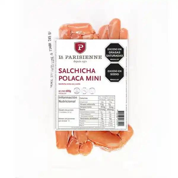 Producto Local la Salchicha Mini Polaca de Res y Cerdo Marca la Parisienne es Una Delicia Gourmet Para Los Paladares Más Exigentes. Este Producto Exquisito Combina la Robustez de la Carne de Res Con la Suavidad Del Cerdo Creando Una Sinfonía de Sabores Que Resalta la Riqueza de Las Tradiciones Culinarias Polacas. La Parisienne Sinónimo de Calidad y Sofisticación Asegura Que Cada Salchicha Mini Polaca Está Elaborada Siguiendo Los Más Altos Estándares Garantizando un Deleite en Cada Bocado.
