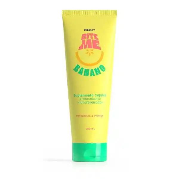 ¡Bite Me es una mascarilla que vas a querer comértela! 250ML Está especialmente diseñada para cabellos frágiles, opacos y gravemente dañados por la degradación de proteínas ocasionadas por el exceso de alisados, decoloraciones, exposición constante a altas temperaturas y envejecimiento capilar. Su ingrediente activo 99,5% de origen natural, extraído del Banano con las combinación de aceites de Macadamia, Algodón y Aguacate, logran reponer las proteínas perdidas a diario para que tu cabello esté sano, fuerte, hidratado y protegido, tanto en la estructura interna como externa del cabello.
