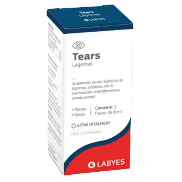 DESCRIPCIÓN: Tears, sustituto lagrimal con Condroitín Sulfato “A” al 20 % como principio activo. Este biopolímero natural se destaca por su capacidad de fijar y retener el agua, lubricando y regenerando el epitelio corneal. Gracias a sus propiedades lacrimomiméticas, antiinflamatorias y cicatrizantes puede ser utilizado sólo o como coadyuvante de otros colirios.