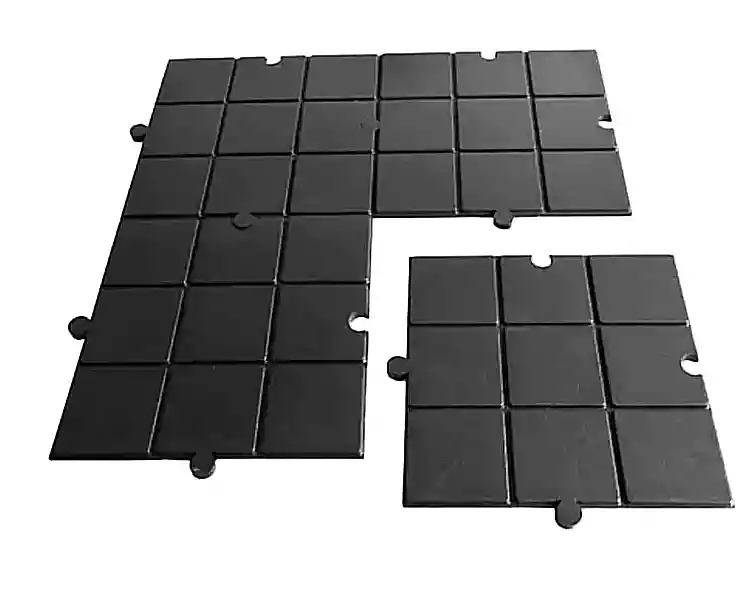 •Medidas por lámina: 50cm x 50cm, espesor: 1 cm •Color: Negro •Diseño: Cuadriculado •Material: caucho de alta resistencia