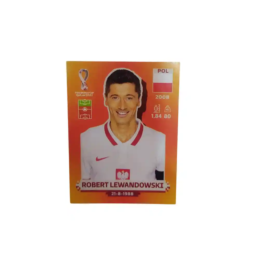Lamina Sticker Robert Lewandowski para Album Copa Mundial Qatar 2022 Panini. Polonia 16