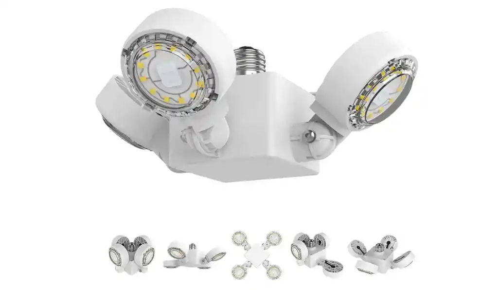 ====================================== Bienvenido/a nuestra tienda ELH COLOMBIA: "¡De la pantalla a tu hogar!" ====================================== Diseño deformable súper brillante: con 4 paneles LED de cerámica, y cada panel LED se puede plegar 135 grados, el ángulo de cobertura máximo puede alcanzar los 360 grados, por lo que puedes ajustarlos a cualquier ángulo que necesites para crear más luz en tu espacio. Fácil de instalar: esta lámpara LED de techo de garaje se puede instalar en una base de tornillo mediano estándar (E26), la instalación es tan fácil como atornillar una bombilla. No se necesitan herramientas ni cableado ni electricistas profesionales. Fácil y conveniente. Duradera y de larga duración: en comparación con las bombillas comunes o las luces de tienda, esta luz LED de garaje de 30 W utiliza nuestra tecnología patentada de disipación de calor de cerámica (CHDT), por la cual el rendimiento de iluminación y la eficiencia de refrigeración se mejoran considerablemente, lo que le da hasta 30.000 horas de longevidad, duradera y consistente con un alto rendimiento. Amplias aplicaciones de ahorro de energía: con temperatura de color de luz diurna de 5000 K, la luz solo consume 30 W, equivalente a una bombilla incandescente de 240 vatios, ahorra hasta un 60% en comparación con las bombillas tradicionales de garaje. Se puede utilizar en garajes, sótanos, talleres, salas de utilidad y recreación, trasteros, graneros, etc.