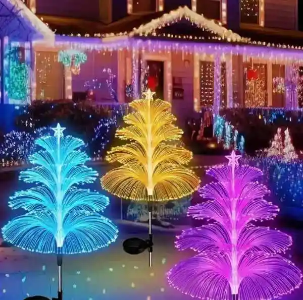Luces navideñas románticas: las luces solares de jardín para árboles de Navidad están hechas de fibra óptica de alta calidad, que tiene una fuerte transmisión de luz y crea un ambiente navideño romántico. COMODIDAD SOLAR: disfrute de la comodidad de la energía solar con estas luces solares para jardín con forma de árbol de Navidad. No se necesita enchufe, ya que cada lámpara tiene un panel de batería independiente que se carga automáticamente con la luz del sol cuando se enciende. Felices fiestas: nuestras luces solares para jardín vienen en 7 opciones que cambian de color para que tu Navidad sea aún más feliz. Solo tienes que encender la luz y dejar que se cargue automáticamente con el sol. Se abre al anochecer y se cierra al amanecer sin problemas. FÁCIL INSTALACIÓN: disfruta de las fiestas con facilidad con nuestras luces de jardín para árboles de Navidad que funcionan con energía solar. No se requieren herramientas adicionales, basta con conectar el panel solar a la fibra óptica y conectar la luz al suelo para facilitar la instalación. Amplia aplicación: estas luces solares de jardín con forma de árbol de Navidad son adecuadas para uso en exteriores, añadiendo un ambiente festivo a tu jardín, patio, bodas, etc.