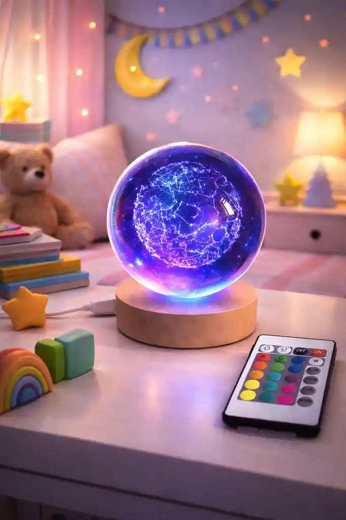La lámpara bola de cristal 3D galaxia es una pieza decorativa moderna que crea un efecto visual espectacular en cualquier espacio. Su diseño con grabado láser muestra una galaxia iluminada que cambia de color, creando un ambiente relajante y elegante. Incluye control remoto para cambiar fácilmente los colores, efectos y niveles de iluminación. Es perfecta para decorar habitaciones, escritorios, salas, oficinas o espacios gamer. Funciona mediante conexión USB, lo que la hace práctica y fácil de usar con cargadores, computadores o power banks. Características * Diseño de bola de cristal con galaxia 3D * Iluminación LED multicolor * Control remoto incluido * Base decorativa tipo madera * Alimentación por USB * Ideal para decoración de habitaciones, escritorios o ambientes gamer Contenido * 1 Lámpara bola cristal galaxia LED * 1 Base de madera con luz LED * 1 Control remoto * 1 Cable USB Perfecta para decoración moderna, regalos o crear un ambiente relajante en cualquier espacio.