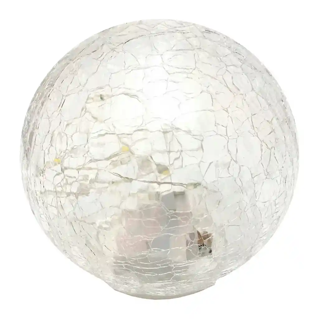Las hermosas figuras decorativas en particular las bolas de cristal esmerilada con efecto de vidrio cuarteado que al tacto es liso marcan tendencia en la actualidad con sus diseños , que podrás lucir en los diferentes espacios de tu hogar, esta lampara cuenta con un sistema de iluminación led que genera un cómodo efecto de luz calida. /// La lampara incluye baterías /// Ficha Técnica: Material de la lampara: Cristal Esmerilado - Base de pasta Posee su interruptor de encendido y apagado Alimentación : Batería AA Color de Luz : Led Blanca Aplicación : Habitación, uso interior, Decoración en fiestas y más. Dimensiones (Altura x Ancho x Profundidad) : 14 cm x 14 cm x 14 cm Términos de Garantía: Para defectos de fábrica o retractos: Por favor revise el producto apenas lo reciba y antes de usarlo. No aplican ley de retracto o defectos de fábrica luego de usar el producto. Se manejan máximo 5 días para reportar defectos de fábrica (por ejemplo, producto funciona mal, piezas faltantes, rotas, etc). Para hacer efectiva la devolución el producto debe devolverse con el empaque original, el cual debe estar en buen estado, incluir todos los documentos y las partes completas y sin daños. Los cuidados y recomendaciones para mantener un producto en buen estado son los siguientes: No aplicarle perfumes ni cremas directamente, no mojarlos, no dejarlos caer y procurar limpiarlos para retirar suciedad.
