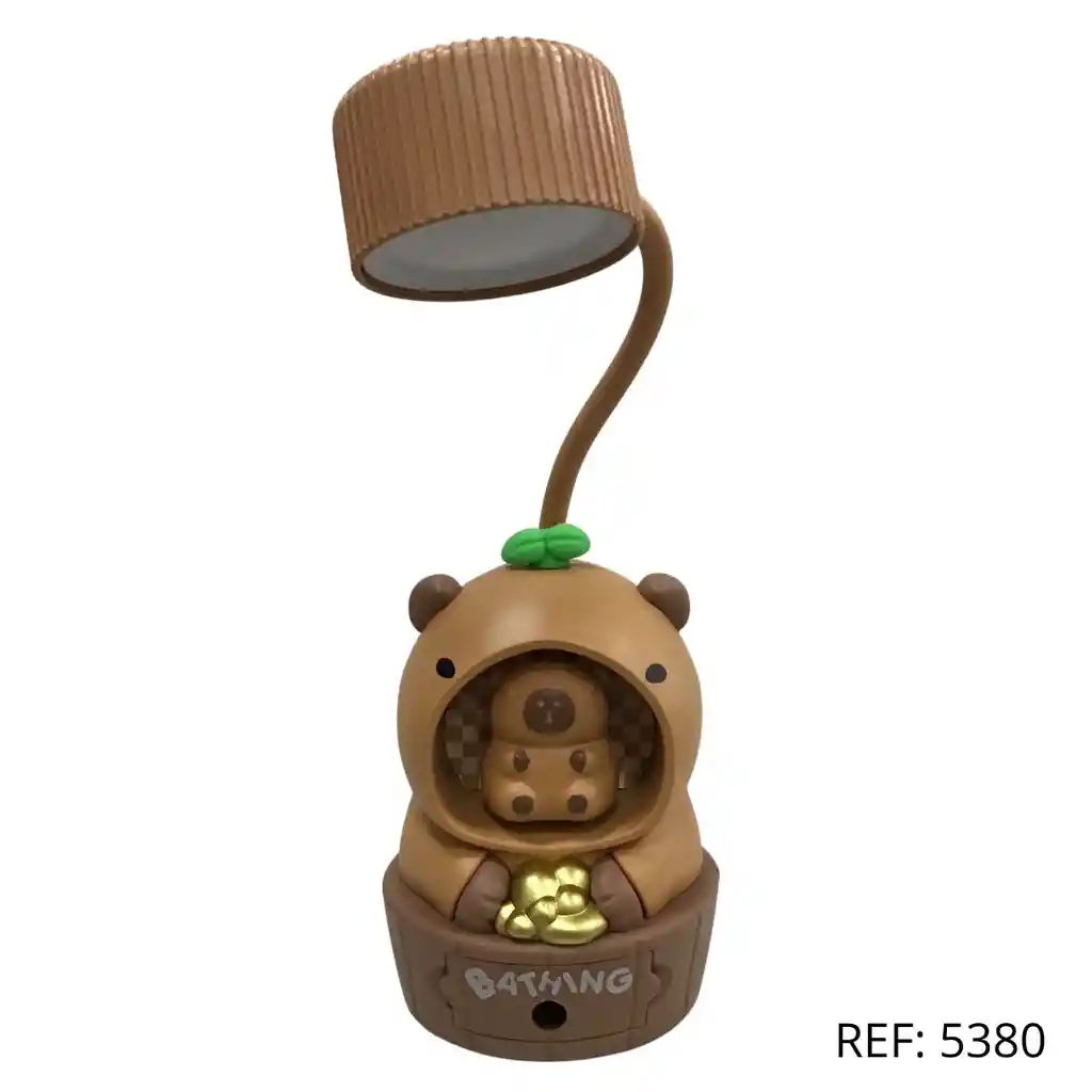 Lámpara recargable de capybara con diseño tierno y flexible. Perfecta para ambientar espacios infantiles.