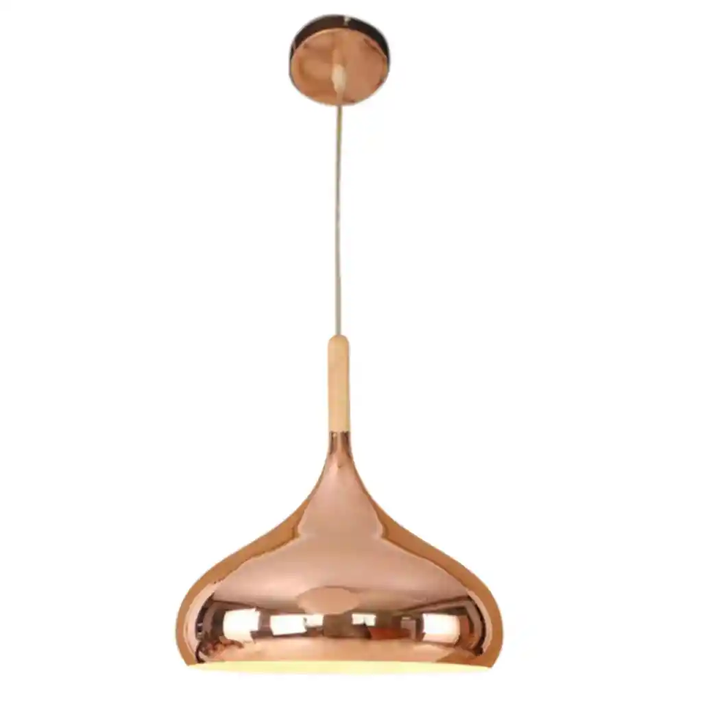 Diseño elegante en forma de campana con acabado oro rosa. Compatible con bombillo E27 de 40W o 60W (no incluido). Aporta un estilo vintage y sofisticado a cualquier espacio. Ideal para salas, comedores, bares y oficinas. Instalación sencilla con sistema de suspensión resistente.