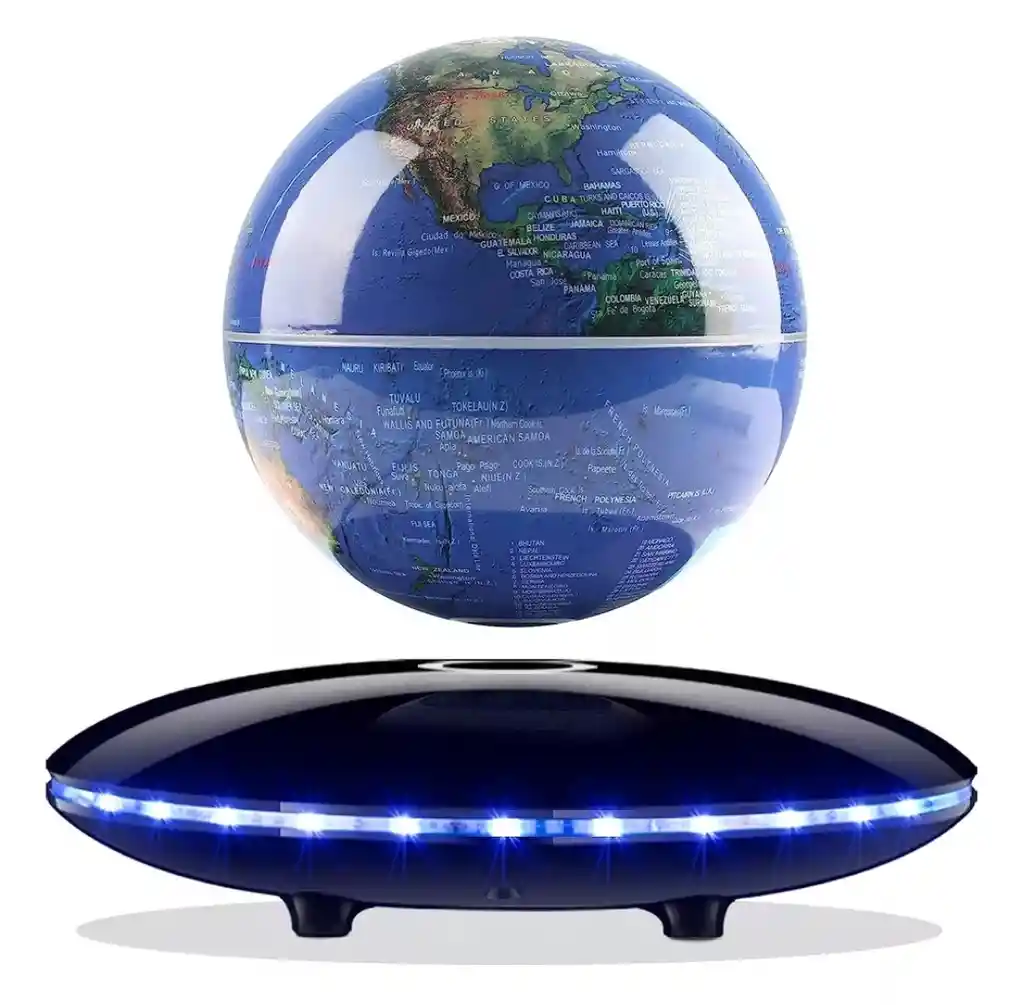 El globo de levitación magnética es un excelente dispositivo de alta tecnología que le gustará a la gente. Flotar, flotar, flotar y dar la ilusión antigravedad es algo muy agradable, además, se puede utilizar como adorno decorativo para el hogar y la oficina. Especificaciones: Tamaño del globo: 6 pulgadas Color: luz colorida Altura de la suspensión: 0,78 pulgadas Potencia: 12 V, 1500 mA Potencia nominal: 5-10 W Tamaño de la base: 6,48 x 6,48 x 1,97 pulgadas Consejo cálido: ¡Potente imán! Mantenga este artículo a una distancia mínima de 7,87 pulgadas de dispositivos informáticos y otros dispositivos electrónicos y metal. No desconecte el adaptador de corriente sin quitar primero el globo, o el globo golpeará la base. Si no puede hacer que funcione en la primera vez. No te preocupes. Tomar un descanso. No será fácil si es la primera vez que lo usa. Cada 10 minutos toma un descanso. O la base se sobrecalentará. El paquete incluye: 1 base 1 globo terráqueo de 6" 1 adaptador