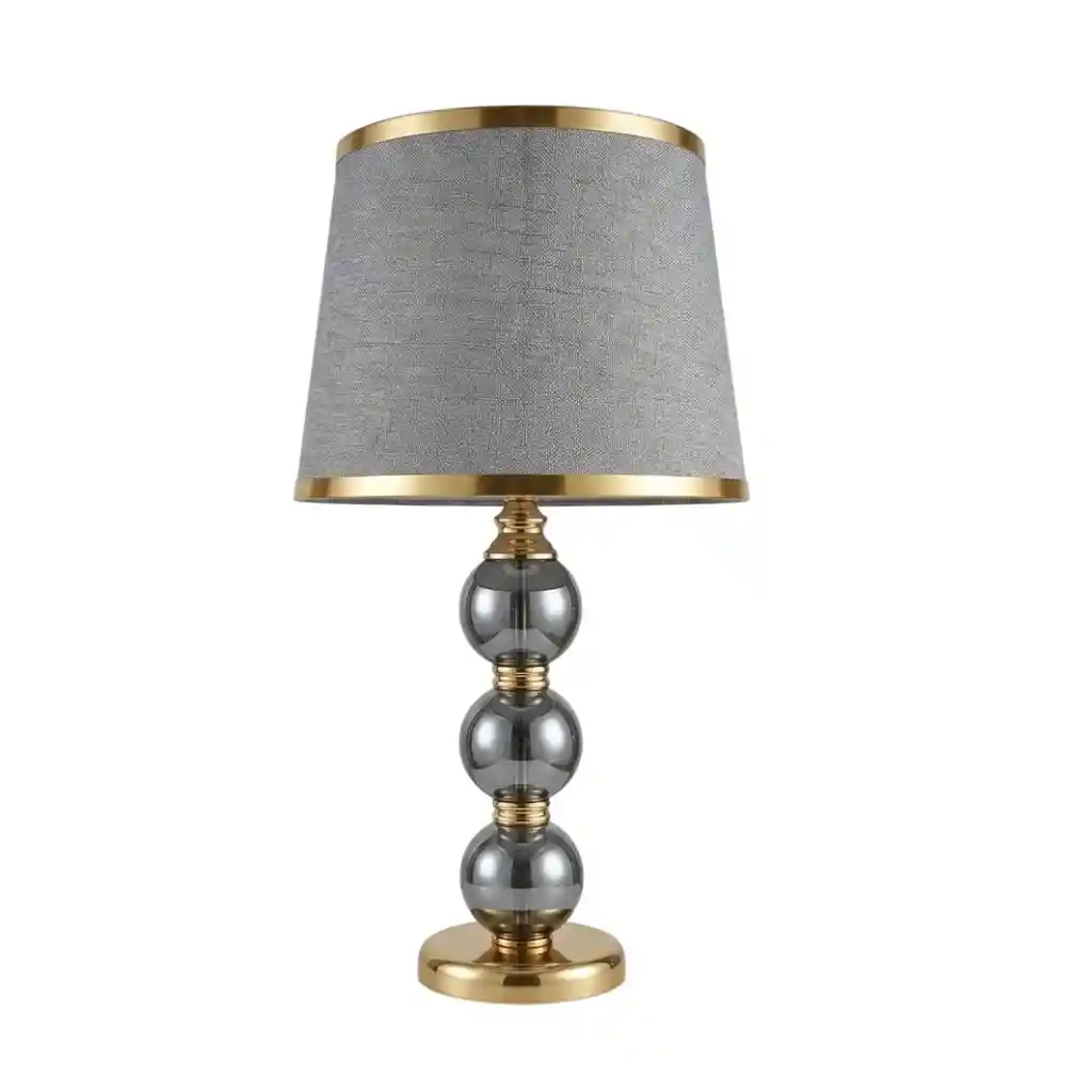 Lámpara de Mesa de Noche Decorativa Moderna. Lámpara de mesa con diseño elegante y contemporáneo, ideal para dormitorios, salas y espacios de lectura. Combina base metálica con esferas decorativas y pantalla textil que proporciona una iluminación cálida y uniforme. Características: Base sólida con acabado metálico dorado Estructura decorativa con esferas de vidrio ahumado Pantalla de tela que suaviza la luz Diseño estable y resistente Uso: Perfecta para mesa de noche, escritorio, sala, hotel u oficina. Ideal como luz ambiental o de apoyo para lectura. Beneficios: Aporta estilo y sofisticación al espacio, crea ambientes acogedores, mejora la iluminación sin deslumbrar y funciona como elemento decorativo y funcional al mismo tiempo.