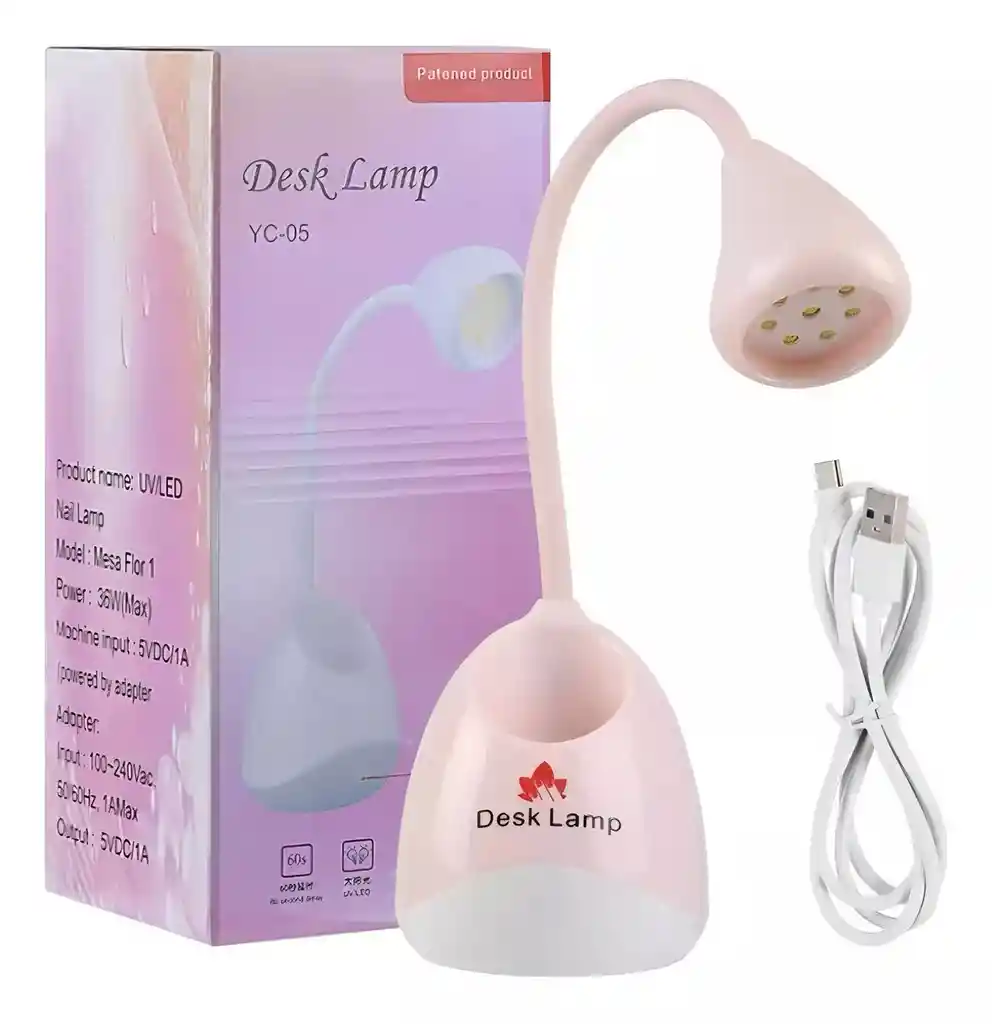 - 1 Unidad - 36w - Lampara para Soft Gel - Recargable con USB - Inalámbrica - Brazo Flexible - 8 Bombillos