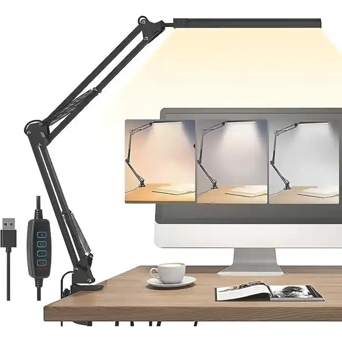 Lámpara de Escritorio LED con Brazo Articulado y Control USB Ilumina tu espacio de trabajo con estilo y precisión. Esta lámpara de escritorio LED cuenta con un brazo articulado ajustable, ideal para dirigir la luz exactamente donde la necesitas, ya sea para estudiar, leer, trabajar o crear contenido. Su diseño moderno y funcional se adapta perfectamente a oficinas, estudios y escritorios en casa. Dispone de 3 modos de iluminación (luz cálida, neutra y blanca) que te permiten elegir la tonalidad adecuada según el momento del día, reduciendo la fatiga visual y mejorando la concentración. El control integrado en el cable USB facilita el encendido, apagado y cambio de modo con un solo toque. Gracias a su sistema de sujeción tipo clip, se instala fácilmente en el borde del escritorio sin ocupar espacio, ofreciendo estabilidad y un acabado limpio. Su tecnología LED es eficiente y de bajo consumo, brindando una iluminación uniforme y duradera. Características principales: Brazo articulado flexible y ajustable 3 modos de luz: cálida, neutra y blanca Control táctil en cable USB Iluminación LED de bajo consumo Soporte con pinza resistente Diseño moderno y minimalista Ideal para estudiantes, profesionales y creadores que buscan comodidad, eficiencia y elegancia en su iluminación diaria. 💡✨