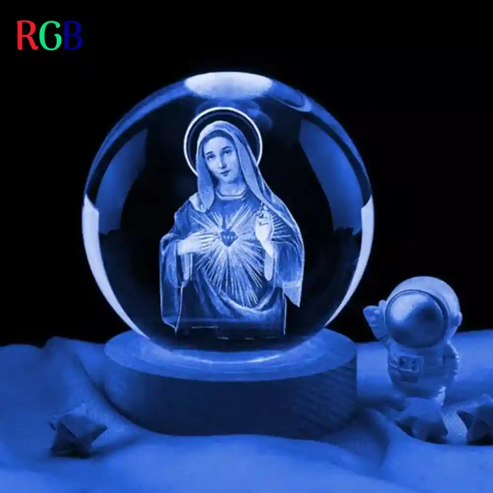 ¡Ilumina tu hogar con la magia del espacio! Nuestra Lámpara Decorativa esfera en 3D - Diseño Virgen Maria, cuenta con un Diseño único e innovador, que llamará la atención de todos tus invitados. Efecto de iluminación impresionante, la esfera en 3D crea un efecto de iluminación impresionante. Perfecta para cualquier habitación, desde el dormitorio de los niños hasta la sala de estar. Crea un ambiente relajante, con una luz suave y relajante. Fácil de usar, incluye un adaptador de corriente (cable USB). Cuenta con las siguientes características: Figura con base en resina Esfera de cristal Luz LED RGB Base de madera Materiales de alta calidad y duraderos.