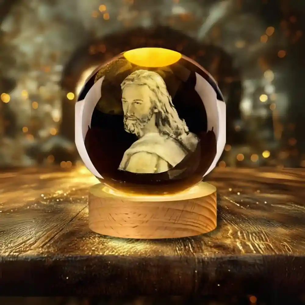 ¡Ilumina tu hogar con la magia del espacio! Nuestra Lámpara Decorativa esfera en 3D - Diseño Rostro Rostro Jesus, cuenta con un Diseño único e innovador, que llamará la atención de todos tus invitados. Efecto de iluminación impresionante, la esfera en 3D crea un efecto de iluminación impresionante. Perfecta para cualquier habitación, desde el dormitorio de los niños hasta la sala de estar. Crea un ambiente calido, con una luz suave y relajante. Fácil de usar, incluye un adaptador de corriente (cable USB). Cuenta con las siguientes características: Figura con base en resina Esfera de cristal Luz LED blanca Base de madera Materiales de alta calidad y duraderos.