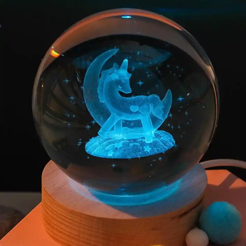 ¡Ilumina tu hogar con la magia del espacio! Nuestra Lámpara Decorativa esfera en 3D – Diseño Unicornio medialuna Grande cuenta con un Diseño único e innovador, que llamará la atención de todos tus invitados. Efecto de iluminación impresionante, la esfera en 3D crea un efecto de iluminación impresionante. Perfecta para cualquier habitación, desde el dormitorio de los niños hasta la sala de estar. Crea un ambiente calido, con una luz suave y relajante. Fácil de usar, incluye un adaptador de corriente (cable USB). Cuenta con las siguientes características: Figura con base en resina Esfera de cristal Luz LED blanca Base de madera Materiales de alta calidad y duraderos.
