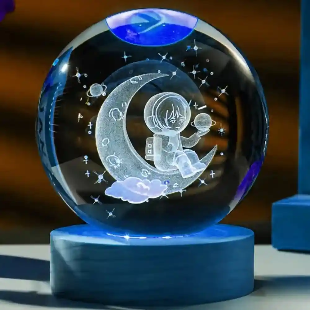 ¡Ilumina tu hogar con la magia del espacio! Nuestra Lámpara Decorativa esfera en 3D – Diseño Astronauta en la medialuna grande cuenta con un Diseño único e innovador, que llamará la atención de todos tus invitados. Efecto de iluminación impresionante, la esfera en 3D crea un efecto de iluminación impresionante. Perfecta para cualquier habitación, desde el dormitorio de los niños hasta la sala de estar. Crea un ambiente calido, con una luz suave y relajante. Fácil de usar, incluye un adaptador de corriente (cable USB). Cuenta con las siguientes características: Figura con base en resina Esfera de cristal Luz LED blanca Base de madera Materiales de alta calidad y duraderos.