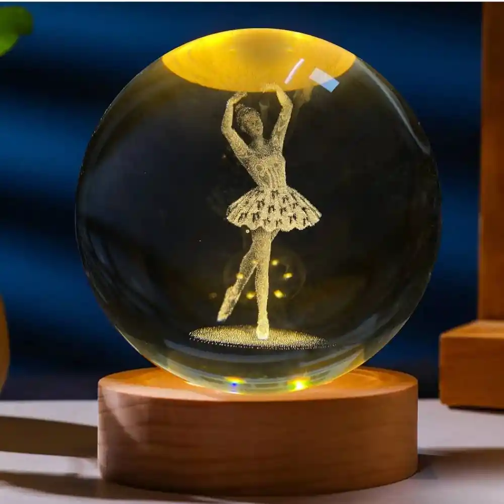 ¡Ilumina tu hogar con la magia del espacio! Nuestra Lámpara Decorativa esfera en 3D – Diseño Bailarina Grande. Cuenta con un diseño único e innovador, que llamará la atención de todos tus invitados. Efecto de iluminación impresionante, la esfera en 3D crea un efecto de iluminación impresionante. Perfecta para cualquier habitación, desde el dormitorio de los niños hasta la sala de estar. Crea un ambiente calido, con una luz suave y relajante. Fácil de usar, incluye un adaptador de corriente (cable USB). Cuenta con las siguientes características: Figura con base en resina Esfera de cristal Luz LED blanca Base de madera Materiales de alta calidad y duraderos.