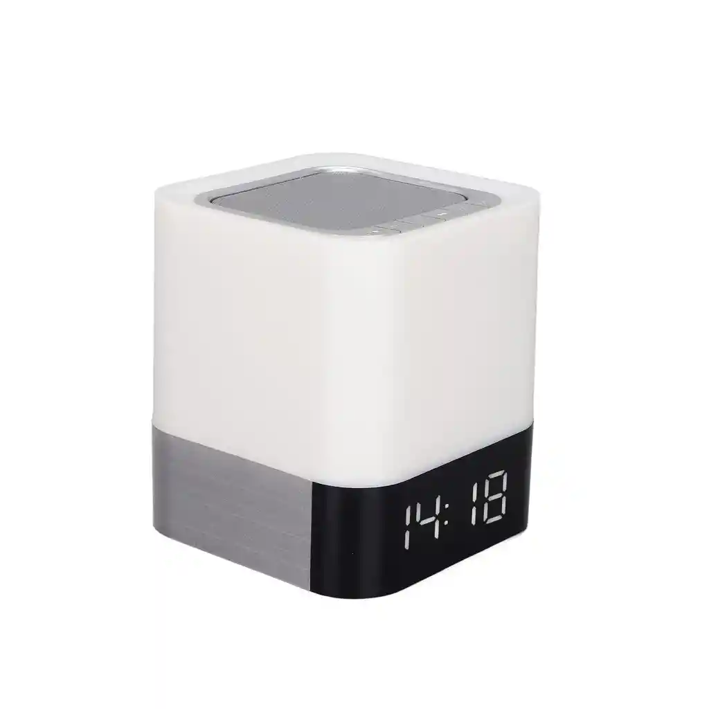 Lámpara LED De Luz Nocturna, Altavoz Inalámbrico Reloj Despertador Bluetooth Funciones 5 en 1: altavoz Bluetooth + luz LED de control táctil + reloj despertador + reproductor de MP3 + llamada manos libres. Utiliza USB y micro memoria o entrada de tarjeta de almacenamiento, entrada auxiliar y unidad flash como reproductor de MP3. Cambio de color: la luz led se puede utilizar para ocio, sala de estar, lectura de dormitorio y luz nocturna de niños. La luz también se puede cambiar al modo de luz de música, multicolor cambia automáticamente con el ritmo de la música. Reloj despertador: reloj despertador de 12/24 horas con calendario, alarma y modo de suspensión. Función de repetición. Si tocas la parte superior cuando suene la alarma, sonará de nuevo en 5 minutos. Si no necesitas la repetición, simplemente toca rápidamente la parte superior dos veces. Batería de gran capacidad: batería de polímero de alta de 1800 mAh (incluida), mayor vida útil de carga y descarga, por lo que puedes escucharla a la vez. Este altavoz te permite disfrutar de la música en cualquier lugar. Garantia Por Defectos De Fabricación.