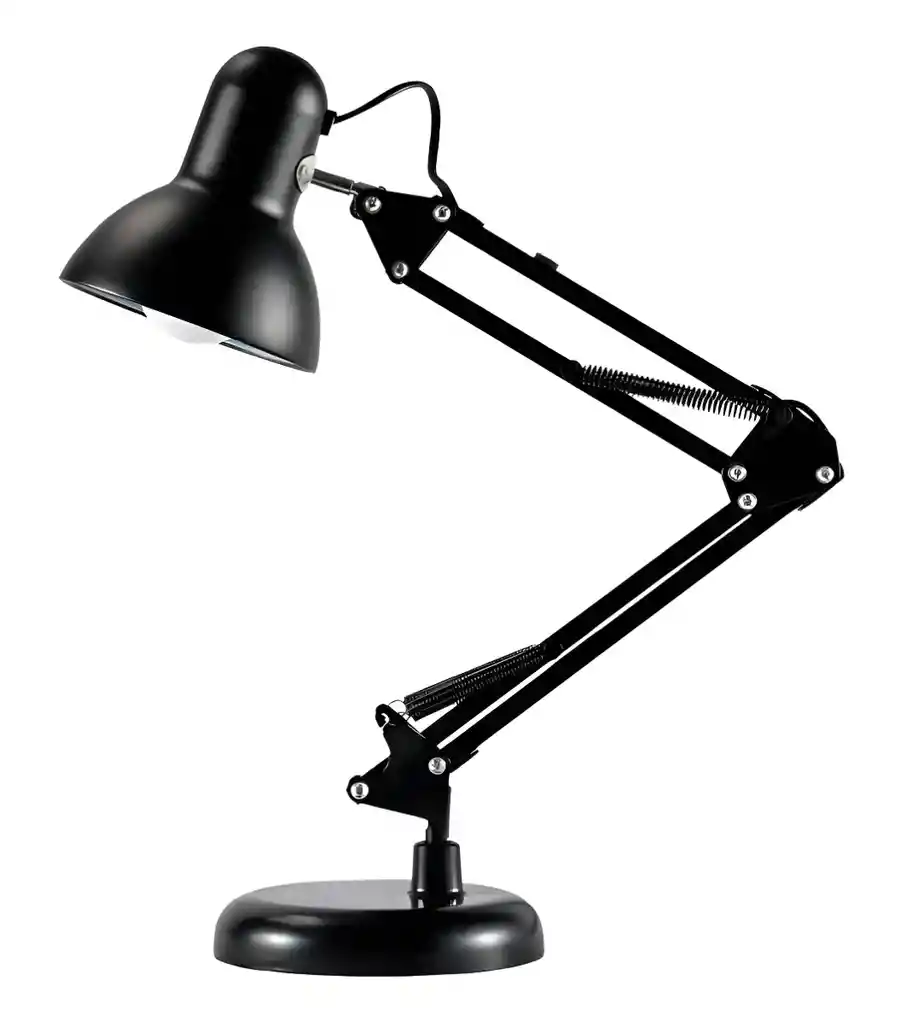 La lámpara de mesa para escritorio de estudio con brazo flexible es un elegante y funcional dispositivo de iluminación diseñado para satisfacer las necesidades de los amantes de la lectura, estudiantes y profesionales que requieren una iluminación óptima en su espacio de trabajo. Esta lámpara combina forma y función de manera excepcional. El cuerpo de la lámpara está fabricado con materiales de alta calidad, generalmente aluminio o acero inoxidable, lo que le confiere durabilidad y una apariencia moderna y sofisticada. Su diseño elegante se integra perfectamente en cualquier entorno, ya sea en un escritorio de oficina, una mesa de estudio en casa o una mesa de trabajo en un taller. El brazo flexible es uno de los rasgos distintivos de esta lámpara. Este brazo permite ajustar la dirección y el ángulo de la luz con facilidad, adaptándola a las necesidades específicas del usuario. Puedes dirigir la luz directamente a tus libros, papeles o pantalla de computadora para evitar sombras molestas y reducir la fatiga ocular. El brazo flexible facilita la personalización de la iluminación según las preferencias individuales y las tareas en curso. La fuente de luz de esta lámpara suele ser una bombilla LED, que proporciona una iluminación intensa y eficiente. Los LEDs son conocidos por su bajo consumo de energía y su larga vida útil, lo que reduce la necesidad de reemplazar la bombilla con frecuencia. Además, la mayoría de estas lámparas ofrecen opciones de atenuación para ajustar la intensidad de la luz a diferentes situaciones y preferencias de iluminación. En cuanto a la base de la lámpara, generalmente es lo suficientemente pesada para mantenerla estable en el escritorio, lo que evita que la lámpara se vuelque accidentalmente. En resumen, la lámpara de mesa para escritorio de estudio con brazo flexible es una combinación de elegancia, versatilidad y eficiencia. Su diseño moderno y su capacidad de ajuste la convierten en una adición esencial para cualquier espacio de trabajo, brindando la iluminación perfecta para aumentar la productividad y el confort en tu área de estudio o trabajo. Material: Metal y plástico Color: Negro Ampolleta E27: (incluida) Voltaje: 110-220V Longitud del cable de alimentación: 1,23 m Altura del producto: 54-60CM Características: Acabado negro mate. Diseño de brazo oscilante negro moderno y sofisticado. Resorte de acero y perillas de control de tensión. Las abrazaderas se montan fácilmente en cualquier mesa de diseño de estudio, estantes y superficies que son verticales u horizontales. Ideal para cualquier estudio, hogar u oficina. Lo que obtienes en la compra 1 x Lámpara para escritorio Recuerda que la vida útil de tu producto depende directamente de su uso. Por esto mismo te recomendamos seguir todas las instrucciones que trae cada artículo al pie de la letra y leer el manual.
