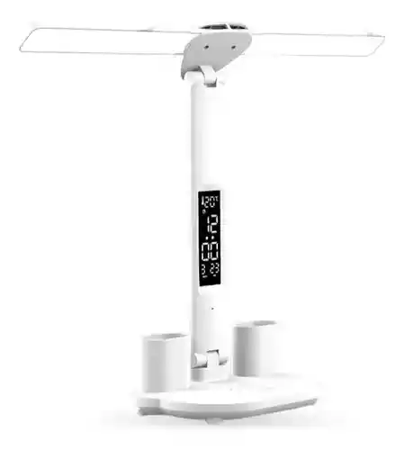 Ilumina tu espacio de trabajo con estilo y funcionalidad gracias a la innovadora lámpara LED de escritorio INNOVO+, diseñada para quienes buscan productividad, organización y confort visual. Características destacadas: Pantalla digital multifunción: incluye reloj, calendario, alarma y temperatura. 3 tonos de luz ajustables: cálida, blanca y neutra para adaptarse a cada momento del día. Atenuación continua: regula el brillo con solo tocar un botón. Diseño rotatorio 180° y altura ajustable: elige el ángulo perfecto para leer, trabajar o estudiar. Base organizadora: incluye compartimentos para bolígrafos, lápices, tijeras y más. Batería recargable de 1.250 mAh: úsala sin cables gracias a su carga USB. Luz LED de bajo consumo: evita la fatiga visual y mejora la concentración. Ideal para: Oficinas, escritorios de estudio, habitaciones, escritorios de niños o estudiantes. Espacios donde se necesite luz funcional y un toque moderno y minimalista. Regalo perfecto para estudiantes, trabajadores remotos o amantes de la tecnología.